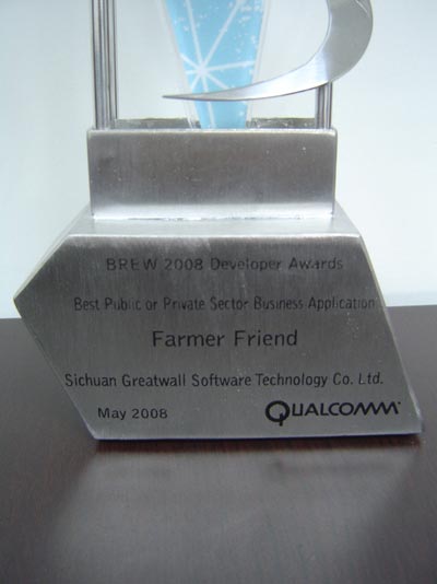 美國·聖叠戈,2008年5月28日,美國高通公司今天宣布了BREW 2008年度開發商大獎的最終獲獎者。四川長城軟件科技有限公司的應用“農業資訊通”,獲得本年度“最佳公共服務或私營部門業務應用獎”,這也是(shì)中國公司在本屆開發商大獎上獲得的唯一獎項。